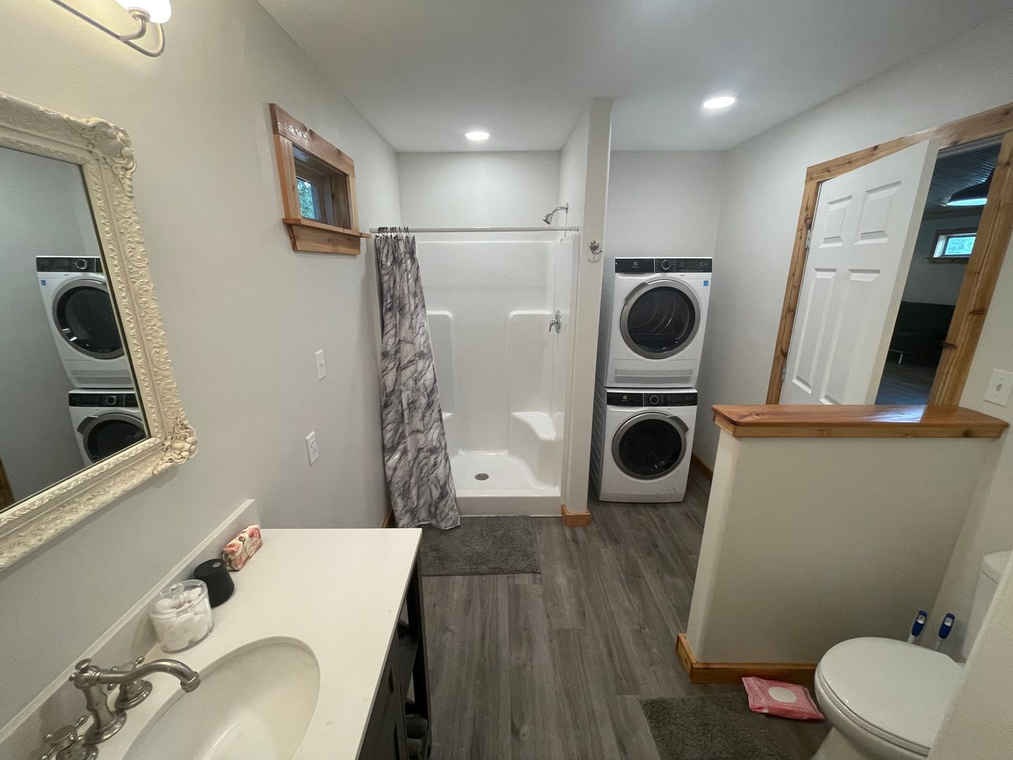 This charming 1 bedroom, 1 bath cabin offers just under 1,000 sq. ft. of living space with no carpet and two efficient mini-split AC/heat systems. The home comes fully equipped with all appliances included, even a stackable washer and dryer.