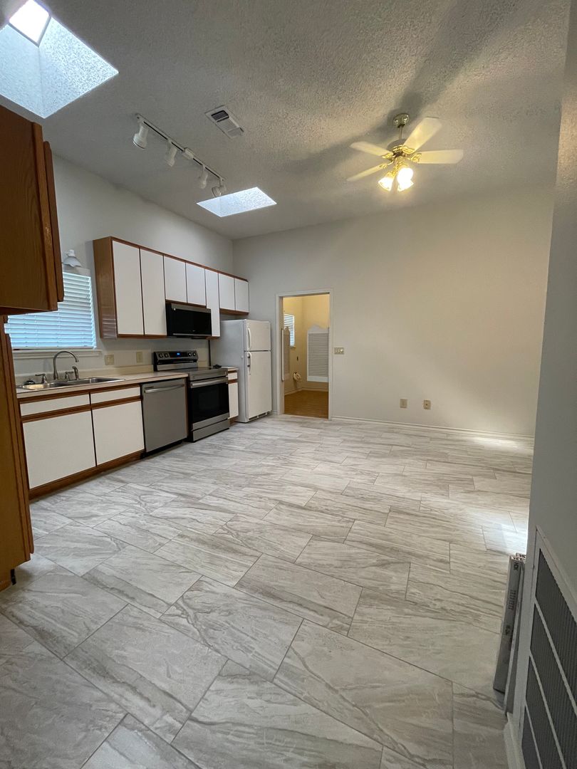 Enjoy an open-concept living room and kitchen, along with a spacious laundry area that leads to a huge covered back porch. Several new appliances were installed in June 2025.